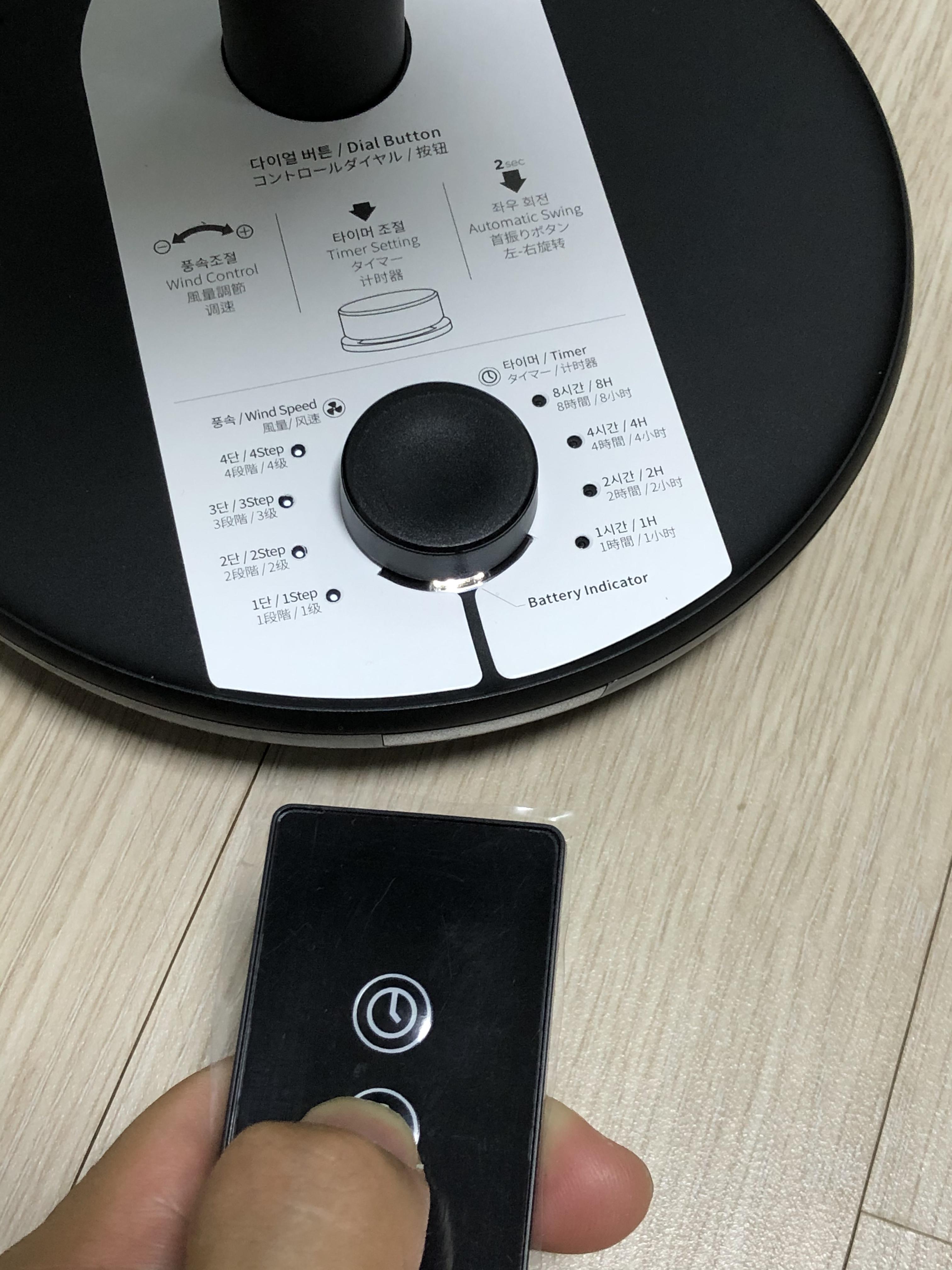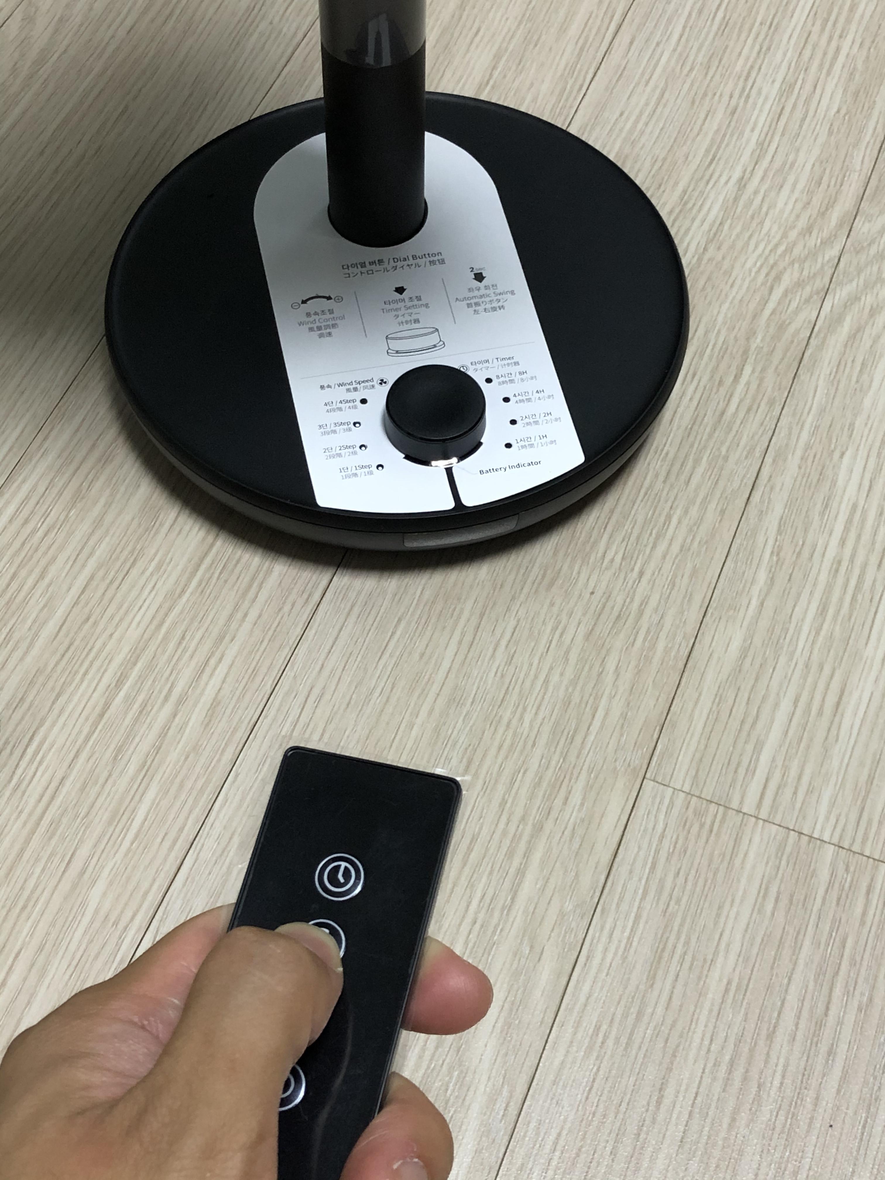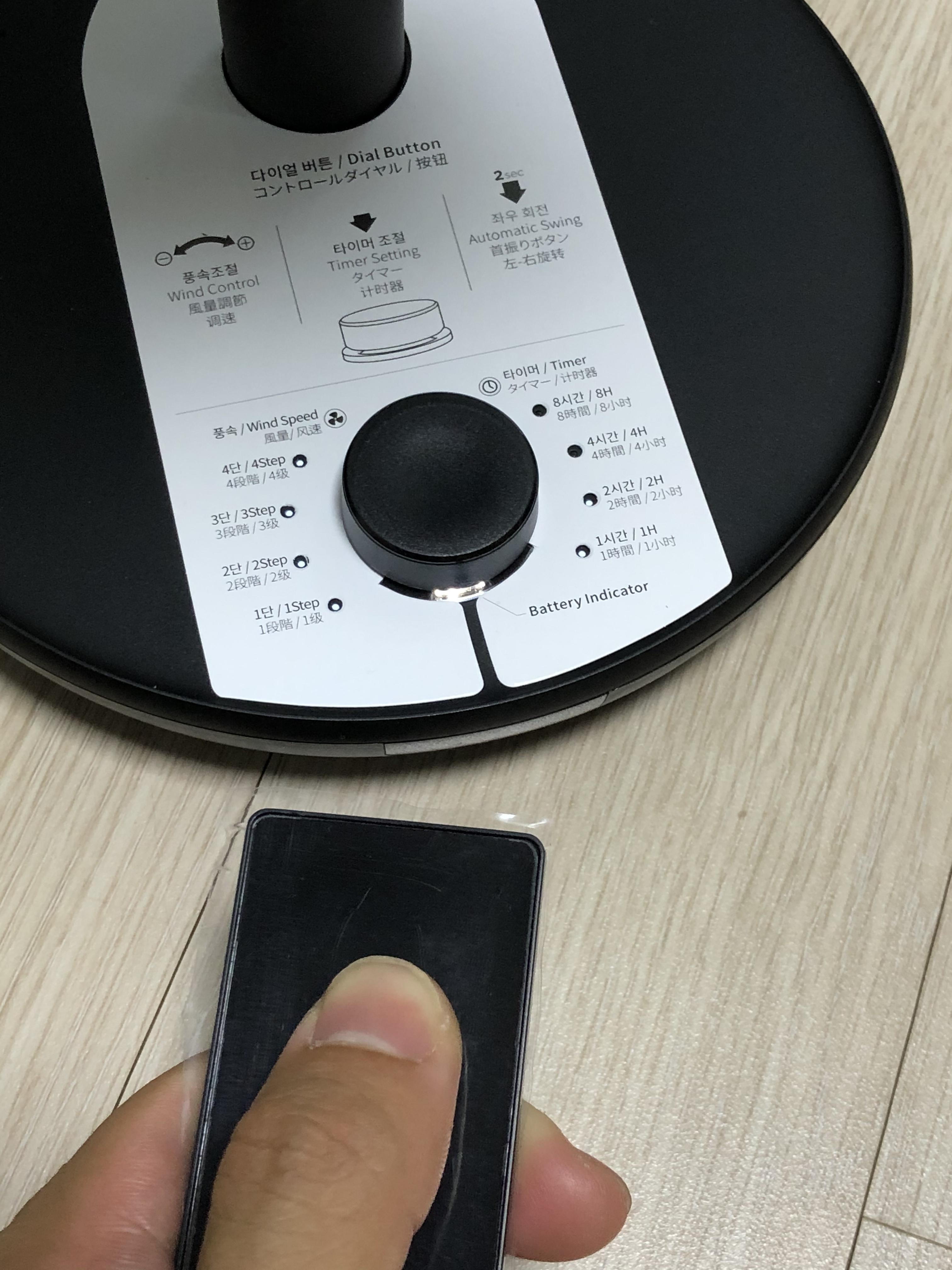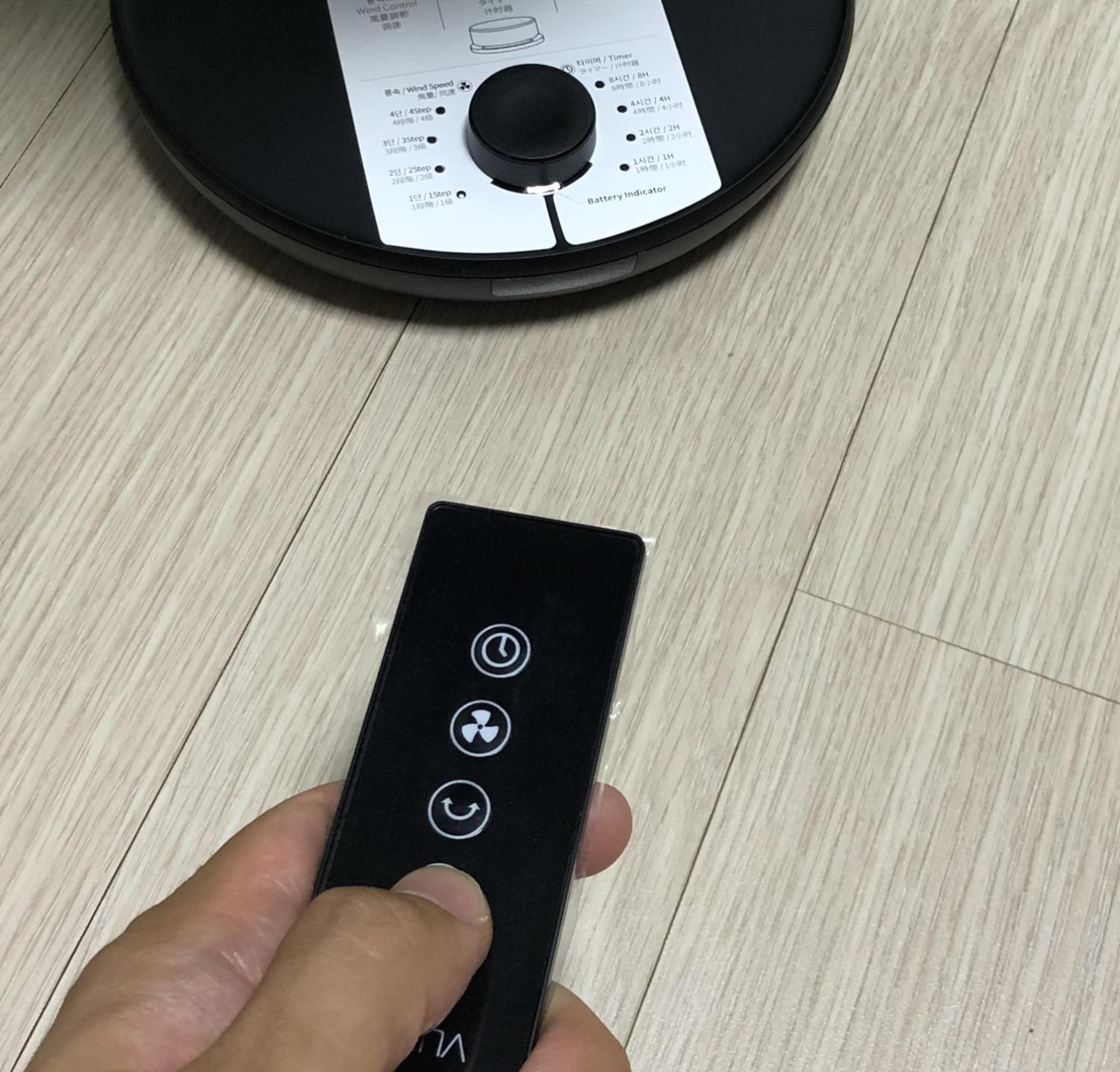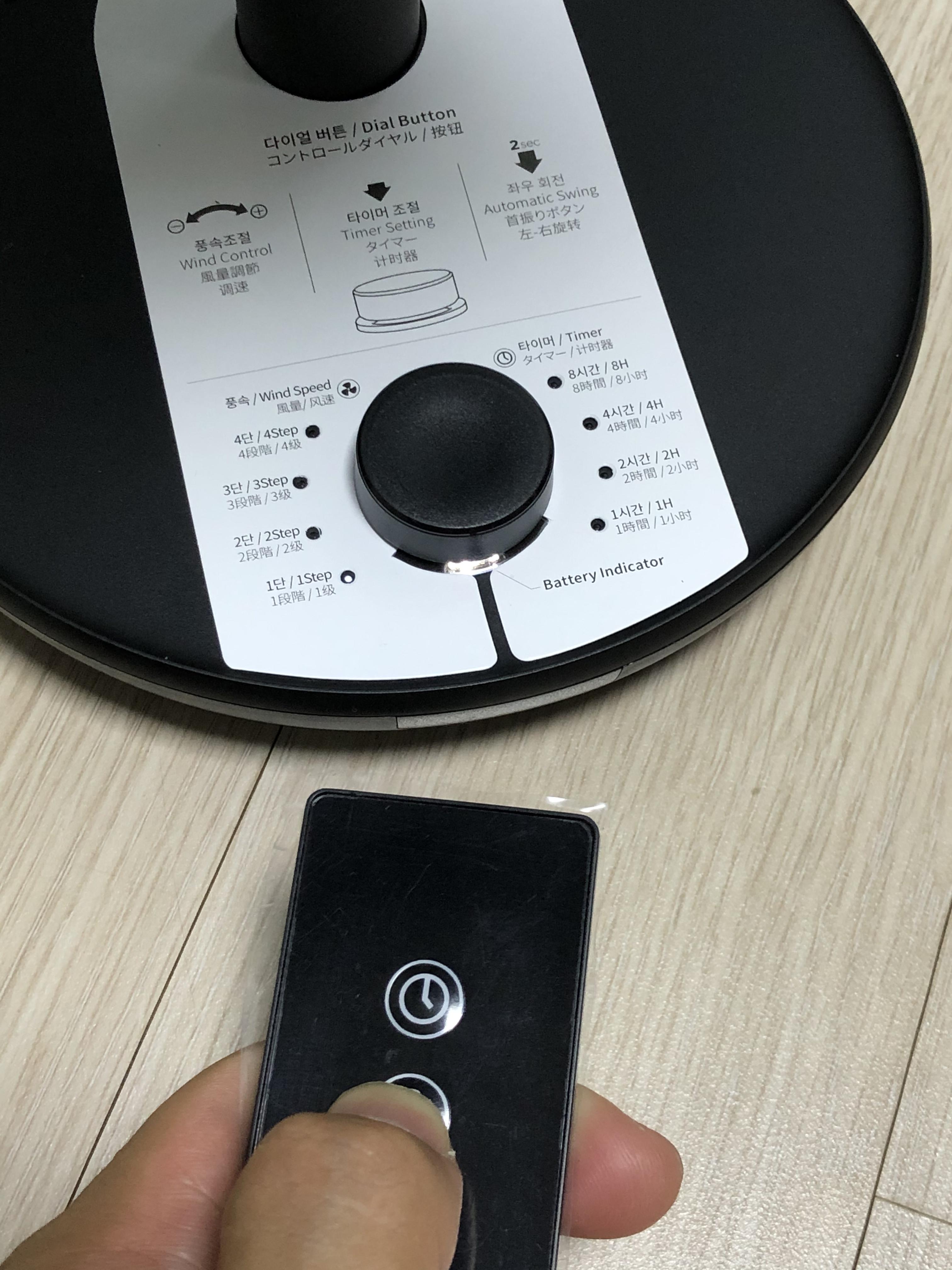 FAN PRIME 제품에는 리모컨도 제공된다. 전원, 회전, 풍량, 타이머 관리를 할 수 있다. 잘 때 먼발치 선풍기를 두고 자다가 필요할 때 적절하게 제어할 수 있을것 같다.