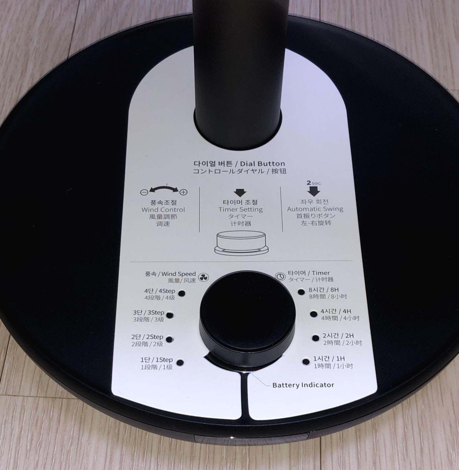 마지막으로 회전 버튼이다. 회전 버튼을 누르면 선풍기가 120도 각도로 회전을 한다. 전원을 끄면 선풍기 머리가 다시 중앙으로 정렬된다. 꽤나 신경써서 만든것 같다. 퀄리티가 아주 좋다.