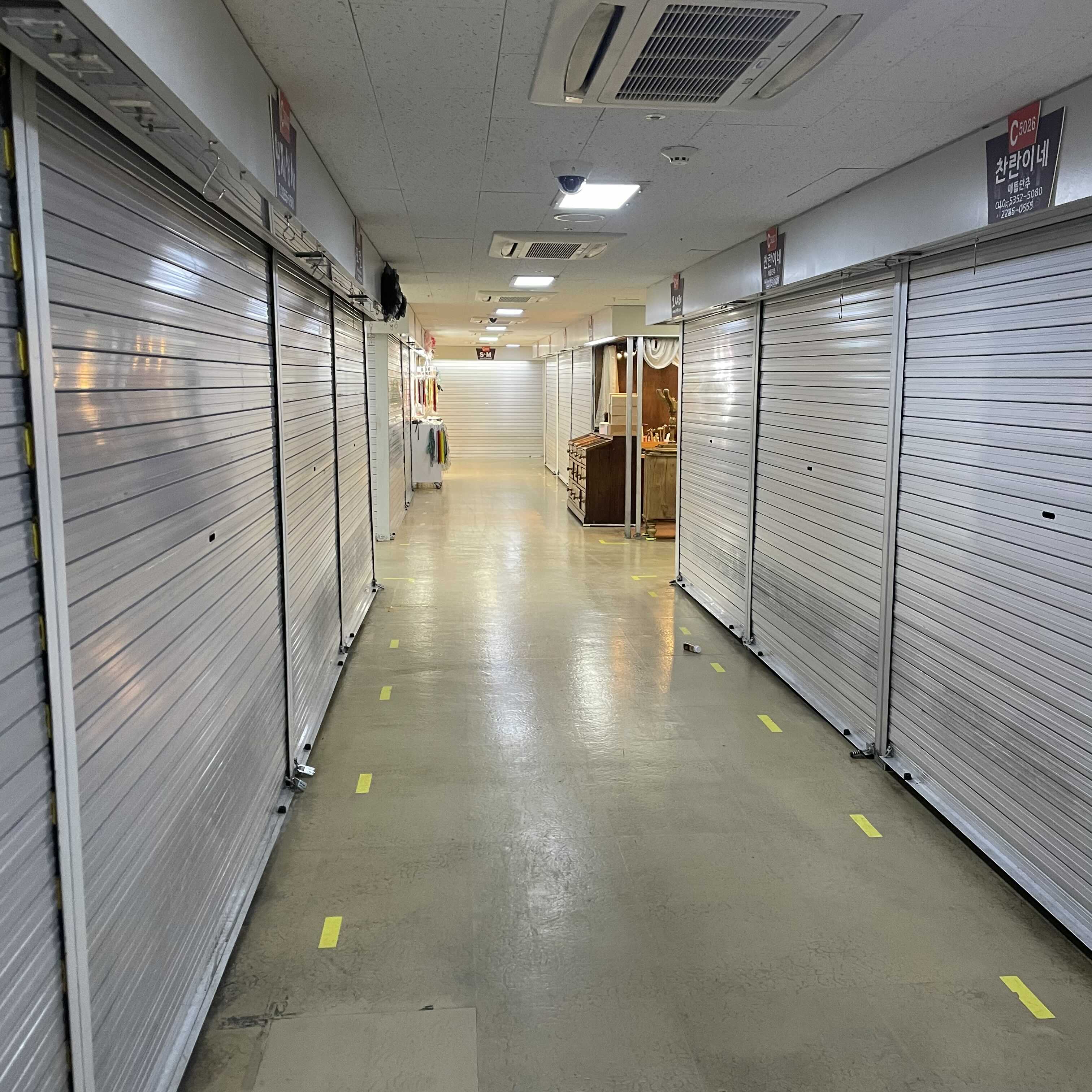 동대문종합시장 C동 5층 사진. 비상계단을 통해 5층에 도착하니 C동의 절반 이상의 업체는 문을 열었다. 1, 2, 3, 4층을 올라오면서 봤는데 그곳들은 열지 않은 가게가 대부분이었다.