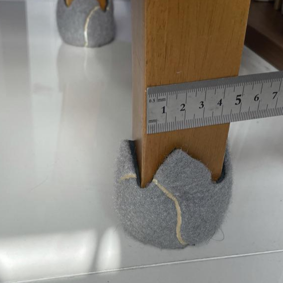 의자 뒷쪽 다리는 약 4.7cm x 3cm 정도의 두께를 가지고 있다. 테니스공을 끼우는데 조금 힘이 들었다. 그래도 안들어가지는 않았다.