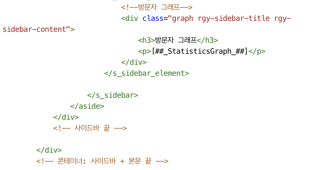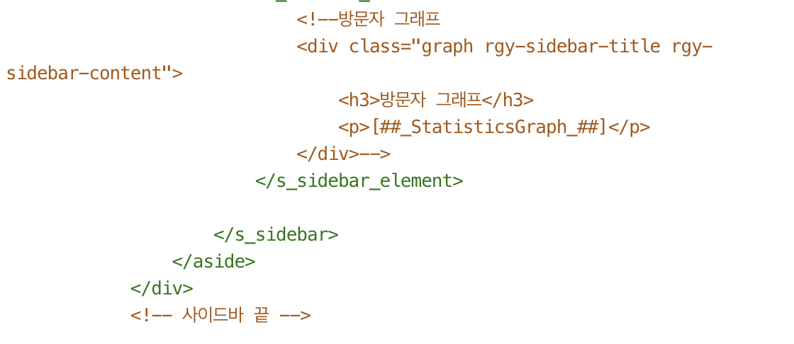 아래의 방문자 그래프 코드도 마찬가지로 적용하면 된다. <div> 시작 태그부터 </div> 마지막 태그까지 주석 코드로 씌워주면 된다. 다만 </div> 코드가 여러 개 있어 주의해야 한다.