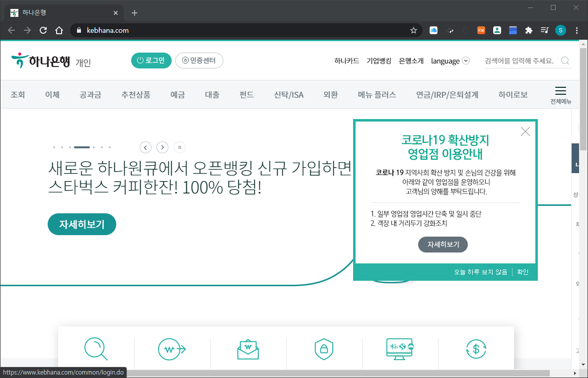 먼저 링크를 통해 하나은행 홈페이지에 접속한다.