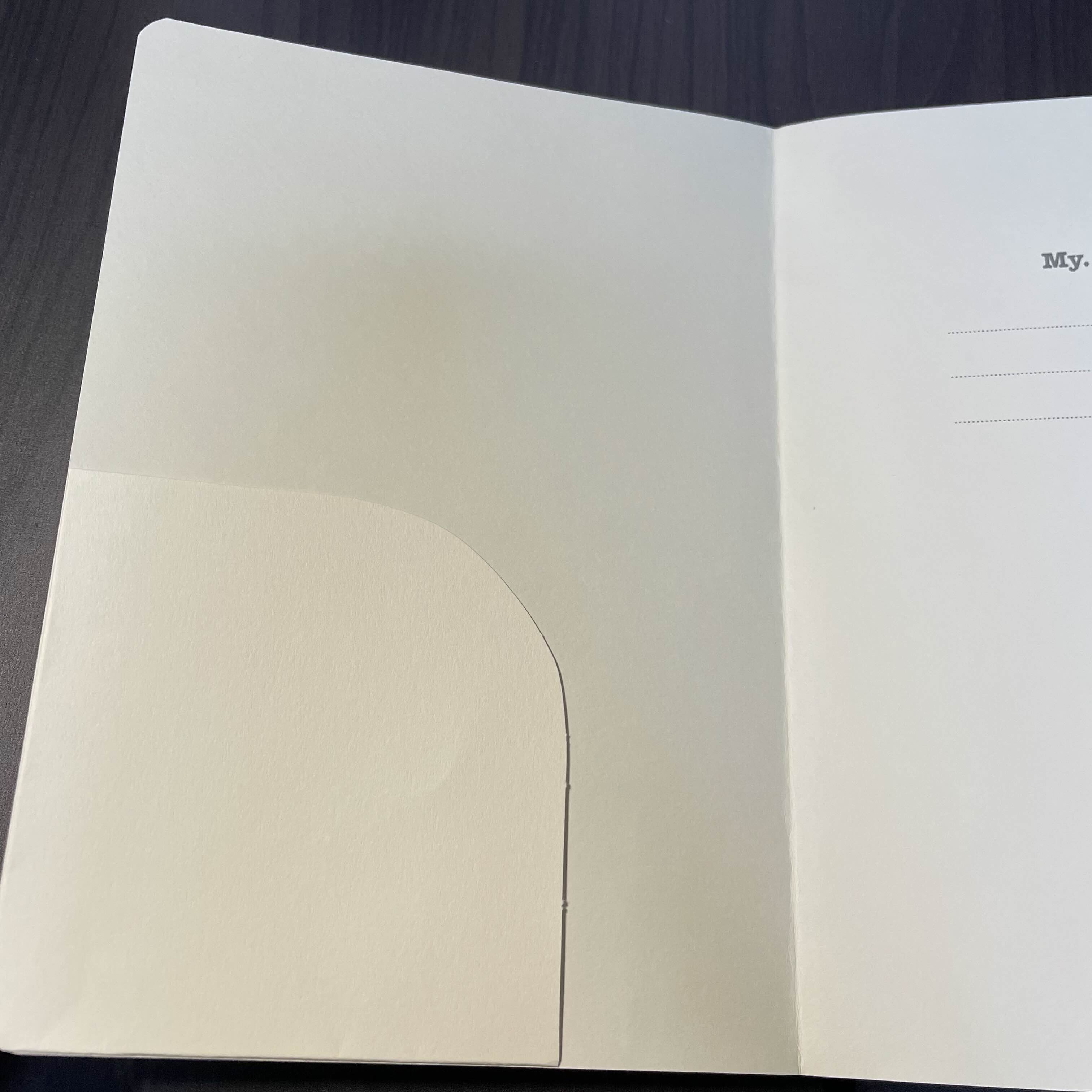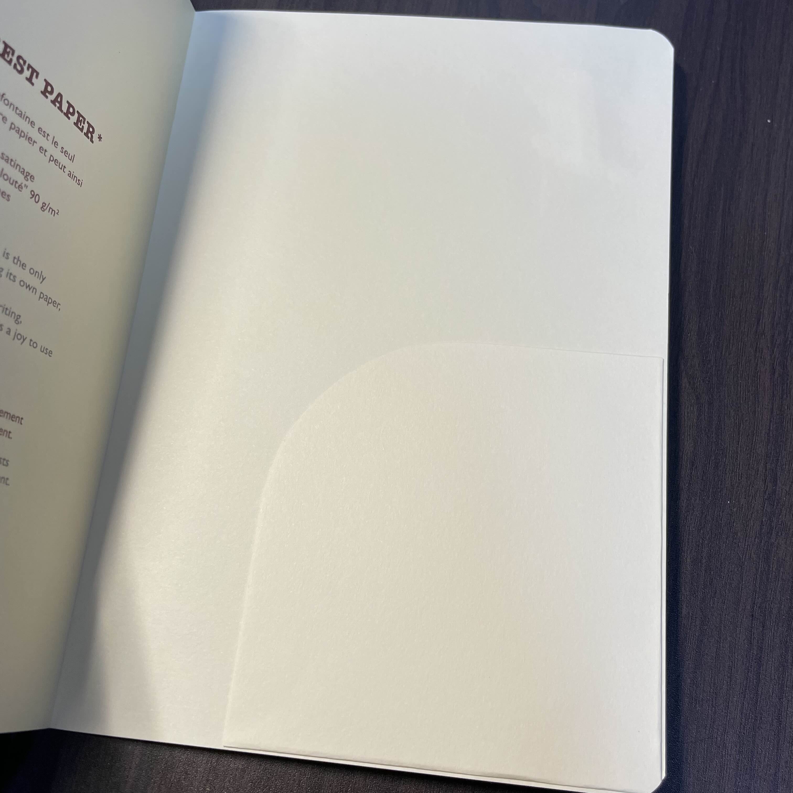 로이텀 노트와 또 다른 차이. 로이텀 노트는 맨 뒤에만 포켓이 있다. 그러나 클레르퐁텐 마이 에센셜 양장 제본 노트는 맨 앞, 맨 뒤 커버에 모두 포켓이 있다. 다만 로이텀 노트는 위로 빠지지 않게 완전한 주머니 형태로 되어있는 것이 차이이다.