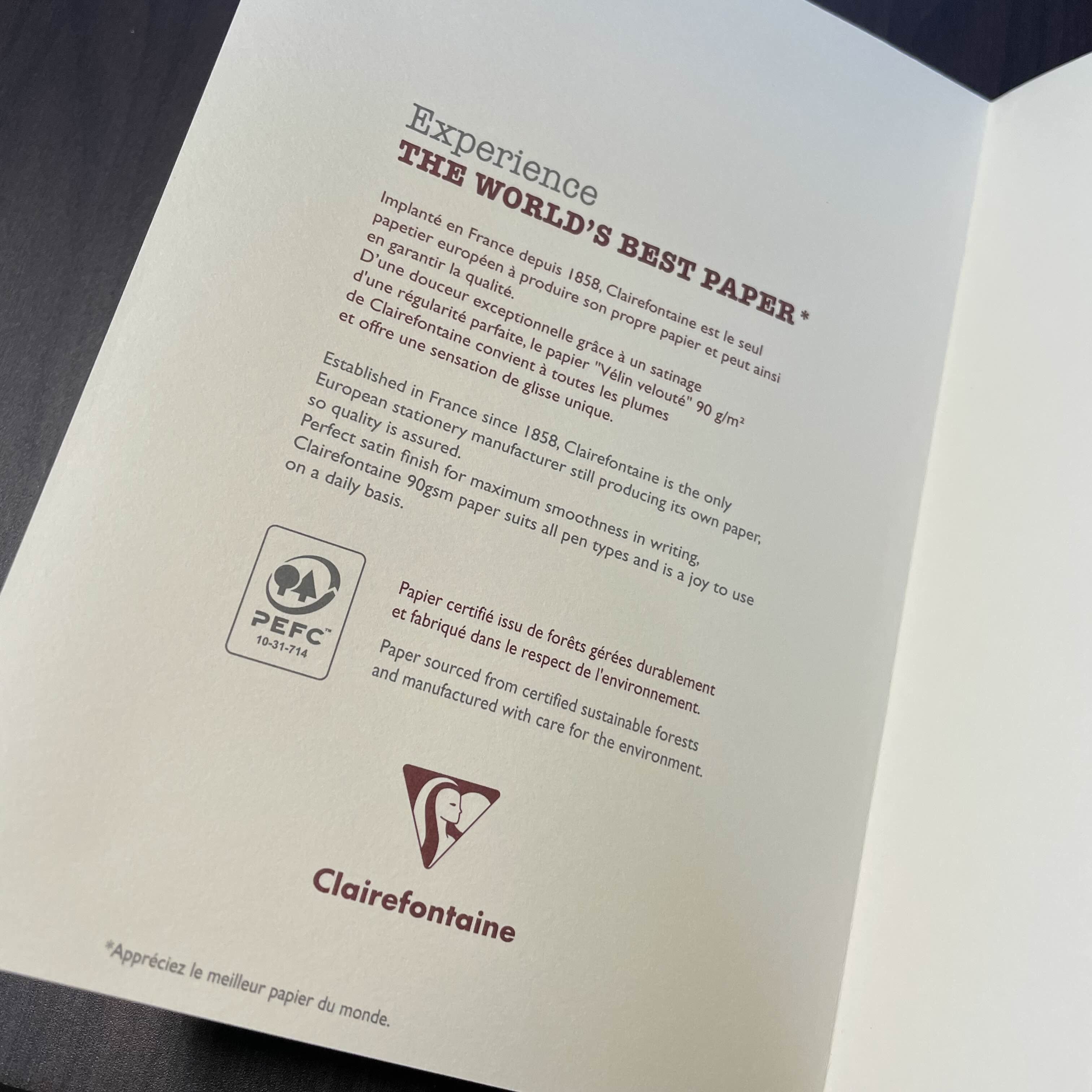 맨 뒷 페이지 모습. 대강 클레르퐁텐 브랜드에 관한 홍보 문구라고 보면 될 듯 싶다.
