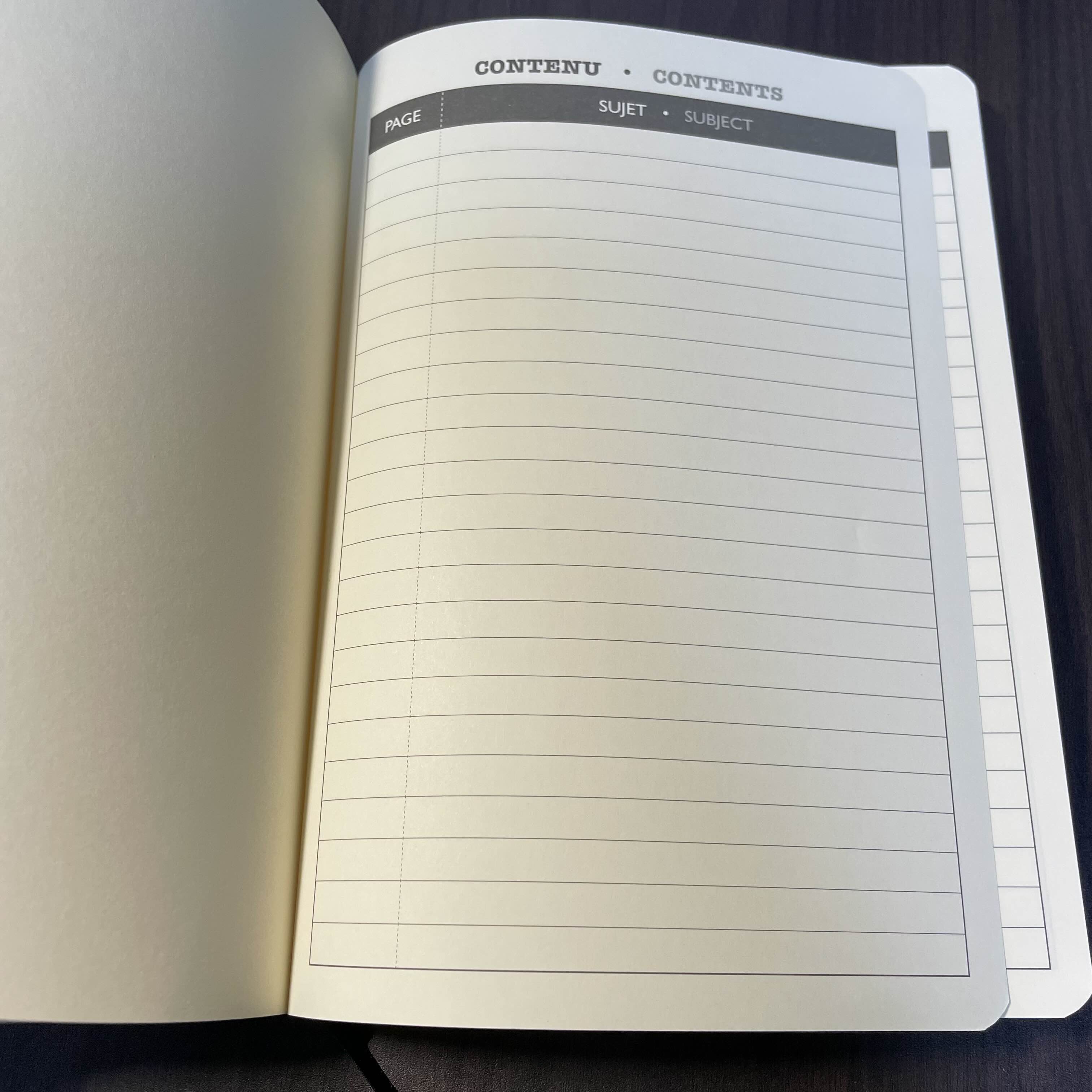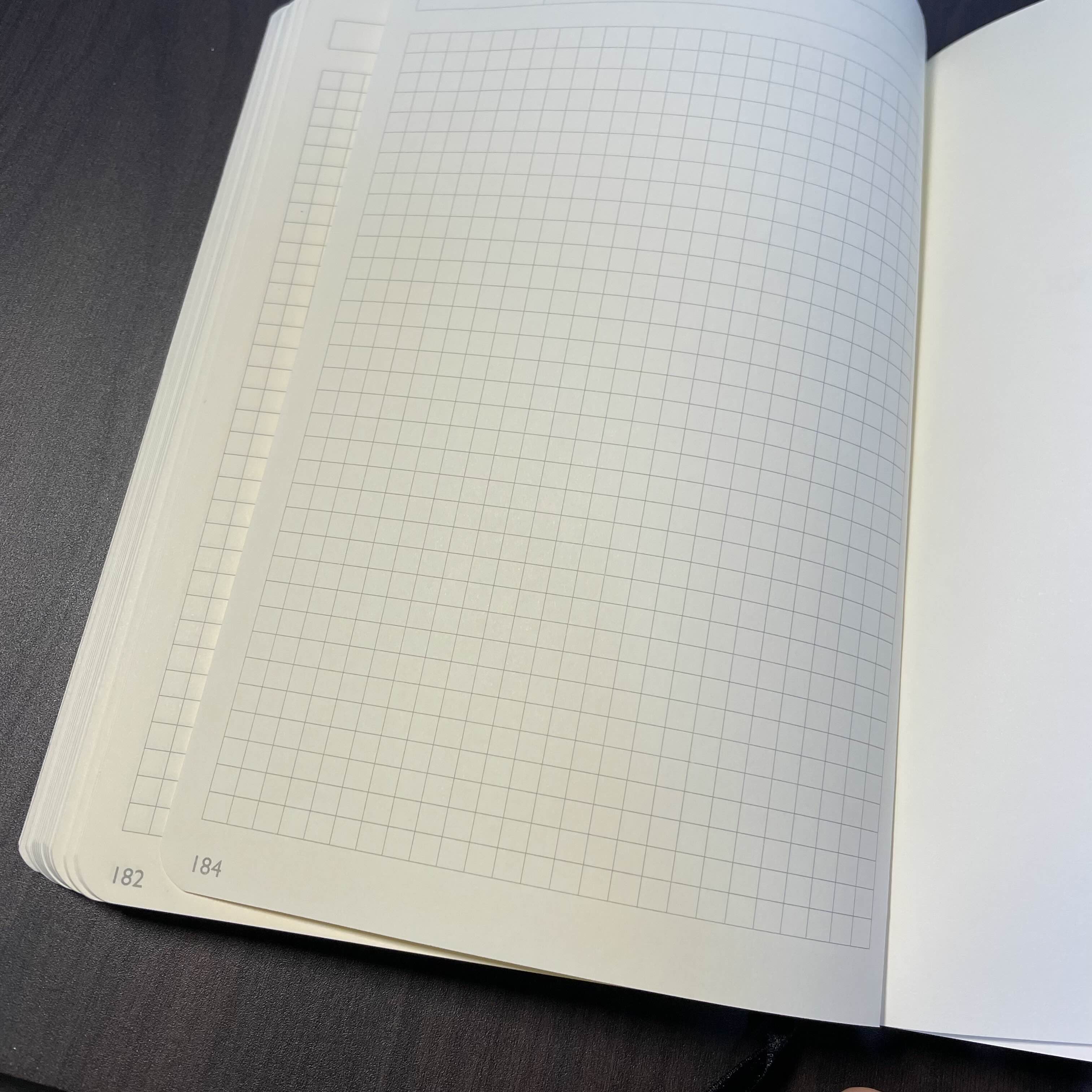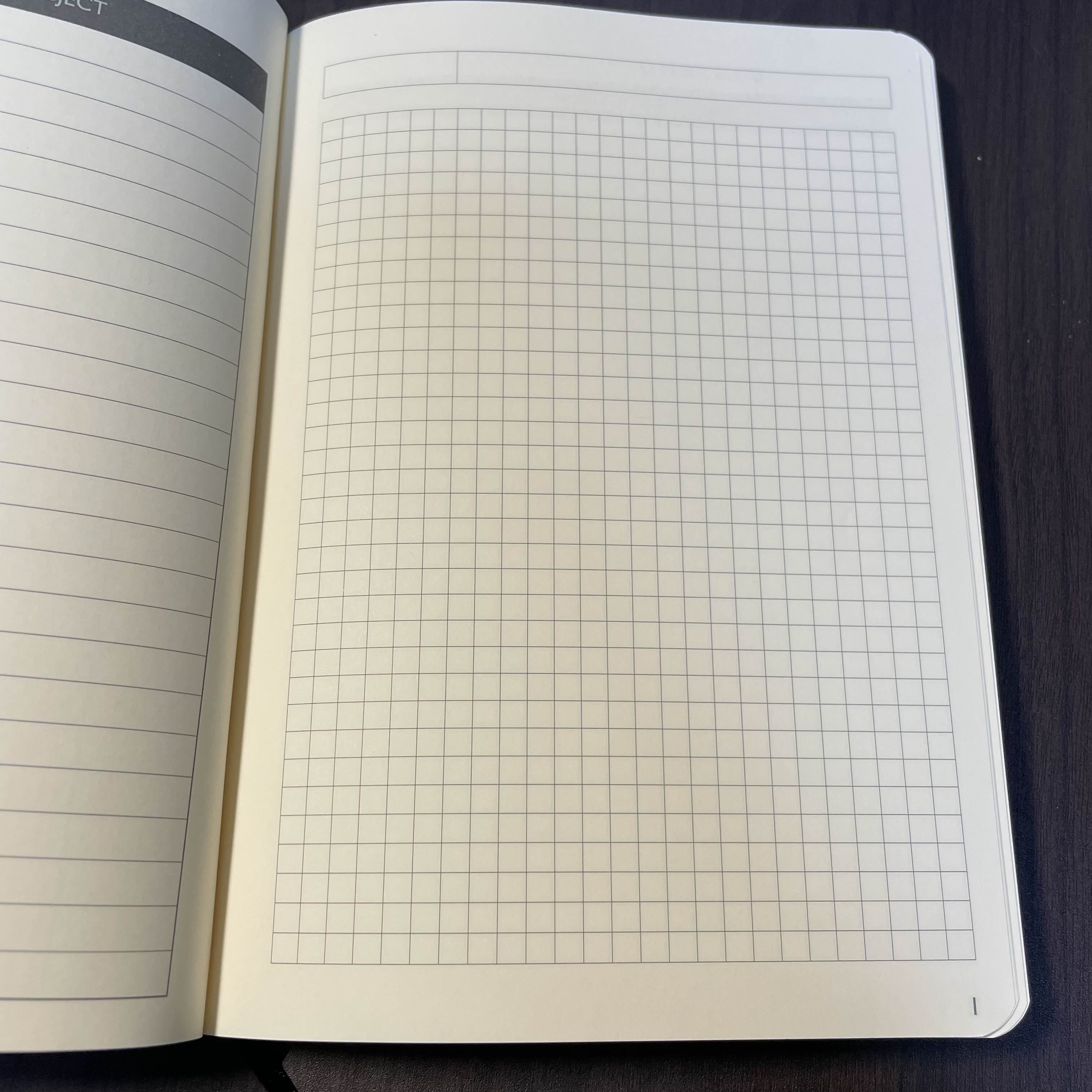 속지(내지)는 라인(8mm), 모눈(5x5), 도트(5x5)가 있다. 월간 계획표 작성 등의 편의를 위해 나는 5x5 모눈(격자) 노트로 구입을 했다.