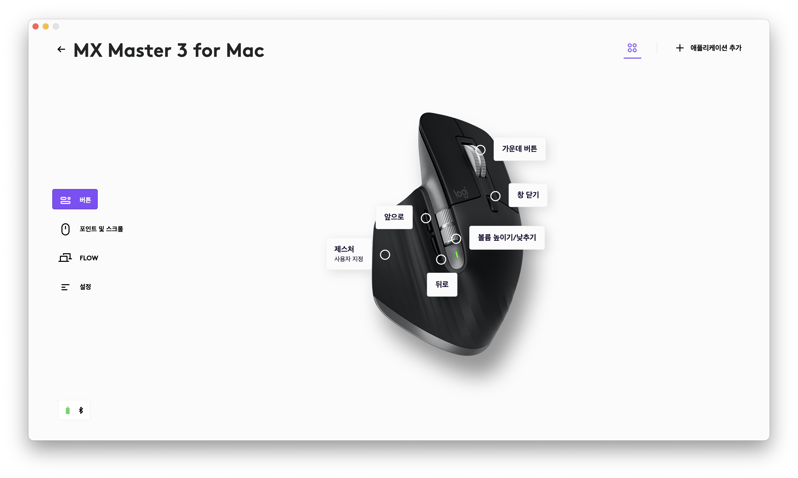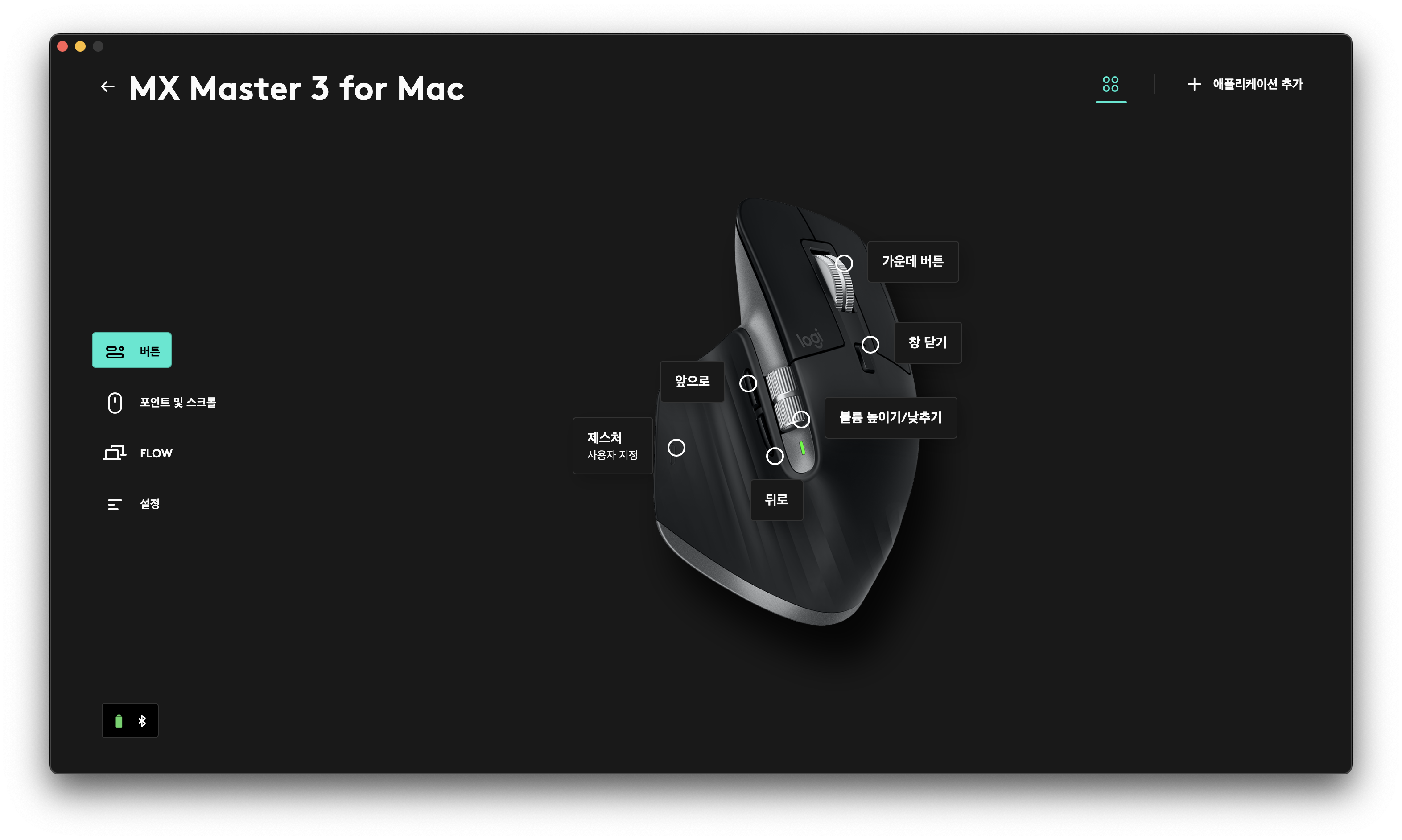 아무튼 Logitech Options +를 설치만 했을 뿐인데 감도가 윈도우에서 사용하는 것과 매우 비슷해진 것 같다. 로지텍 마우스를 맥북에서 사용하면서 답답함을 느꼈던 사용자는 이 프로그램을 설치해보는 것을 강력히 추천한다. 다만 휠 아래의 버튼이 두 번 입력되는 문제는 해결되지 않은 것 같다(창 닫기 버튼으로 사용하는데 크롬의 탭이 두 개가 같이 사라진다).