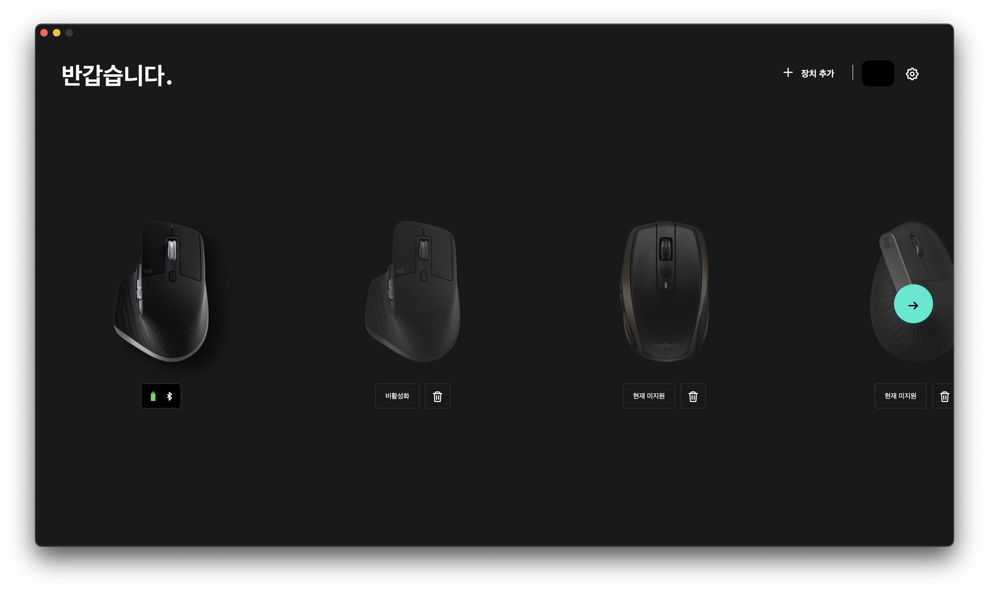 별다른 설정 없이 모든 마우스의 등록 현황이 Options +로 이동된다. 현재 내가 가지고 있는 마우스 중 지원되는 기종은 다행히도 MX Master 3 / Master 3 for Mac 인 것 같다. 다른 기종은 잘 모르겠다. 일단 Anywhere 2S, MX Vertical 은 지원되지 않는다.