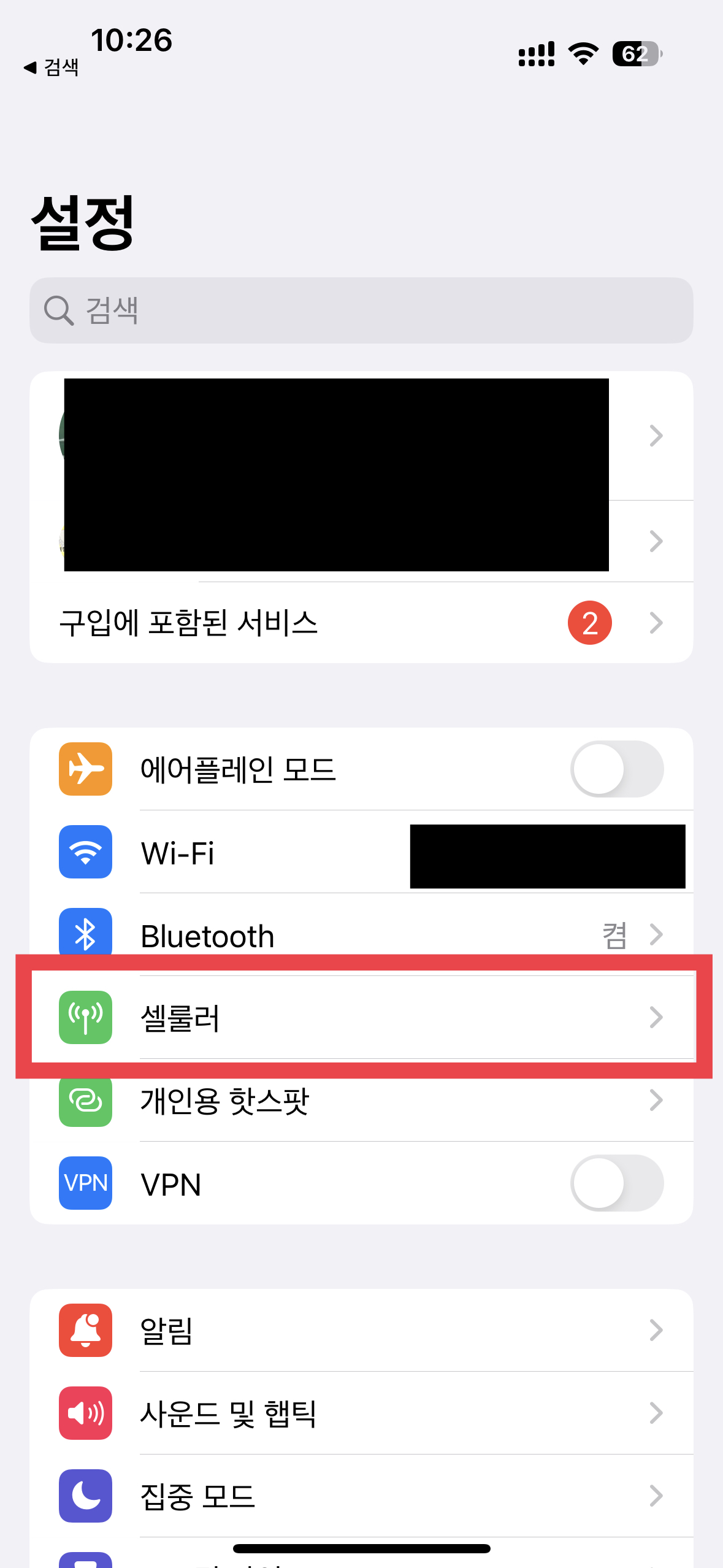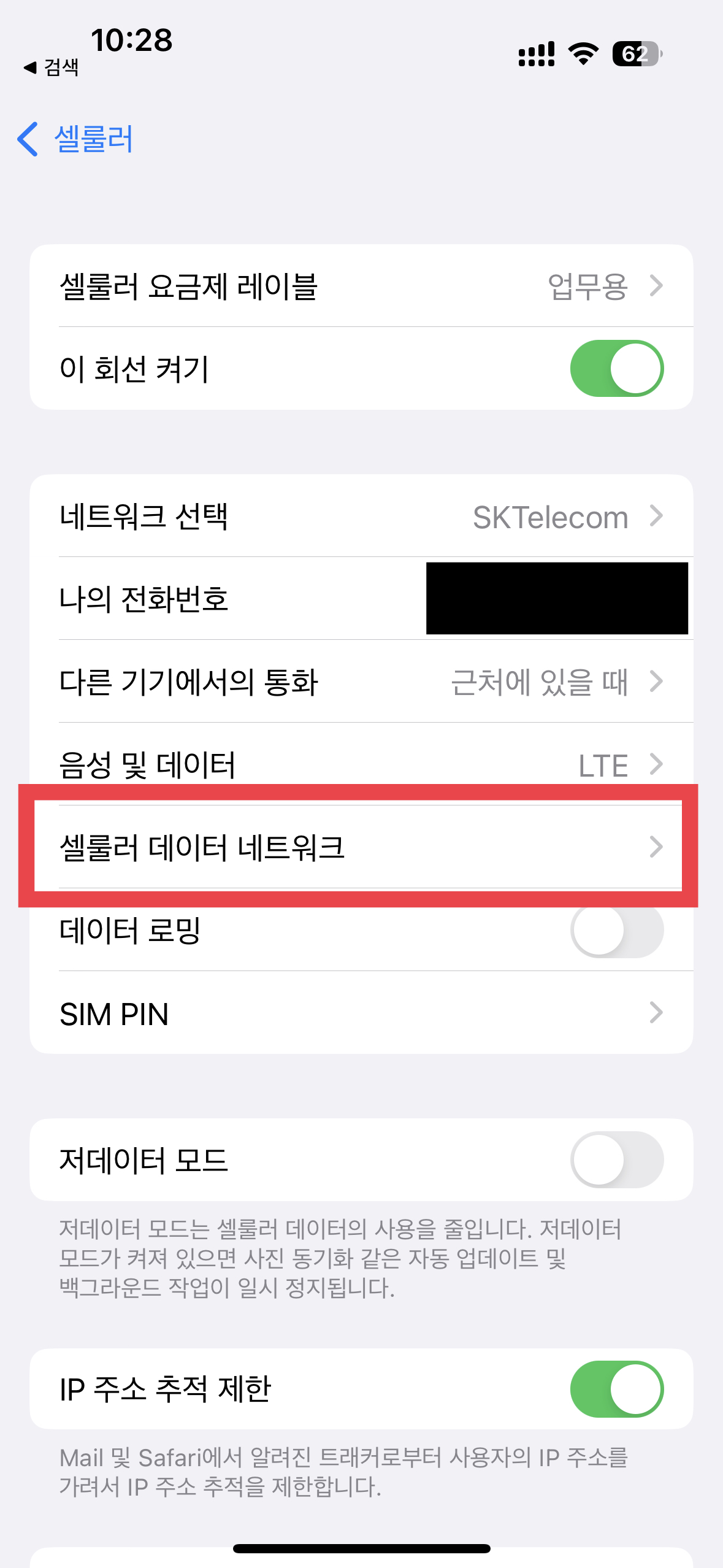 - [설정] - [셀룰러] - [MMS 수신이 되지 않는 SIM] - [셀룰러 데이터 네트워크]를 선택한다.