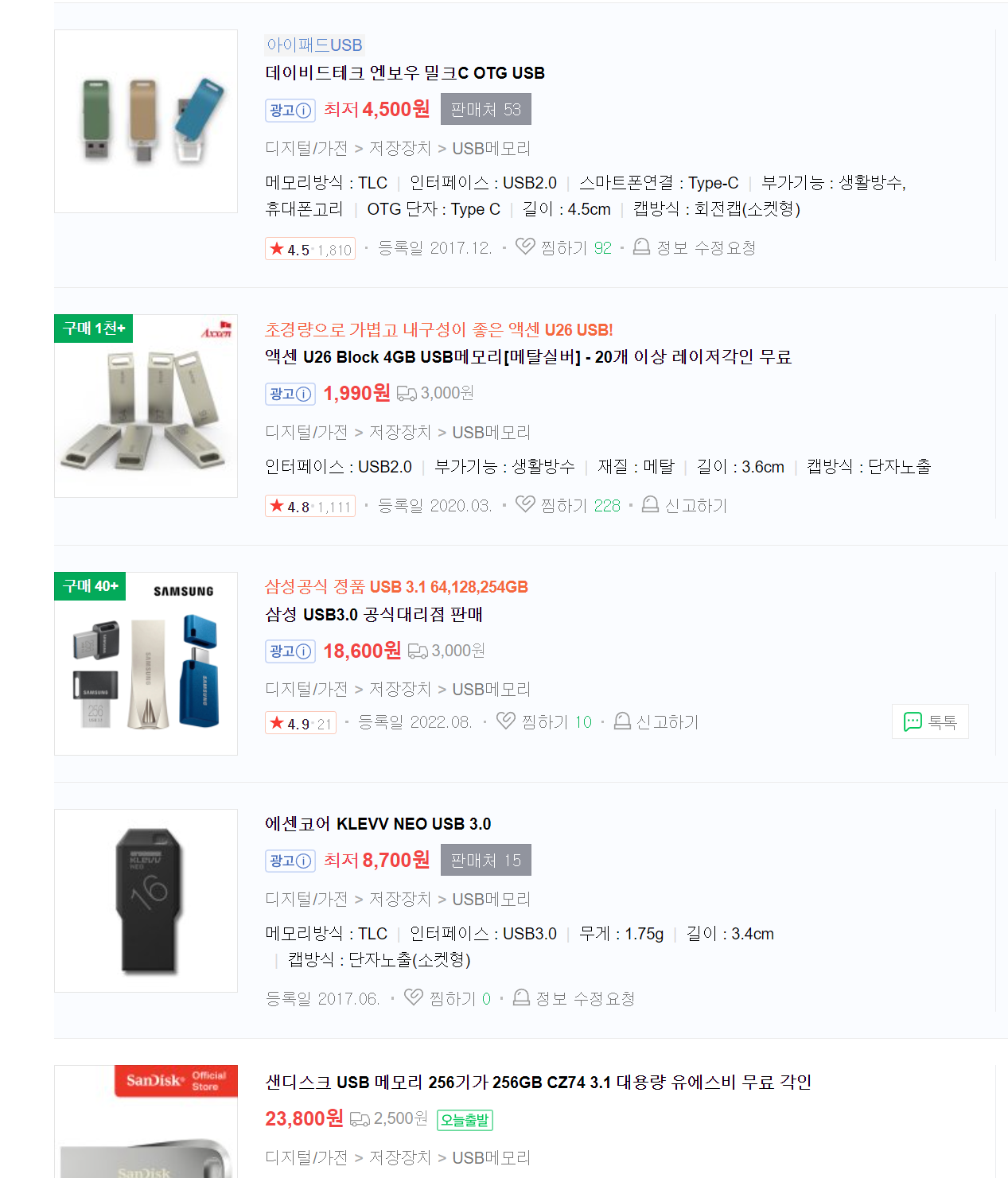 네이버에서 USB를 검색하여 개인적으로 눈에 띄는 부분은