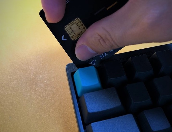 키캡을 전용 도구 없이 빼는 방법은 카드를 이용하는 것이다.