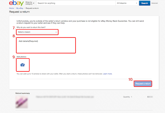 8. Add details 란에 환불 사유를 적는다. 이곳에 셀러가 올려놓은 사진과 받은 물건이 서로 다르다고 서술했다.
