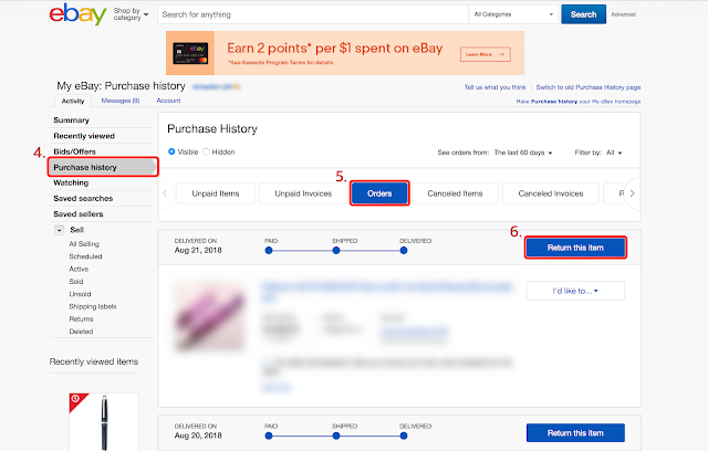 6. Return this item을 클릭해 반품 요청서를 작성하는 화면으로 이동한다.