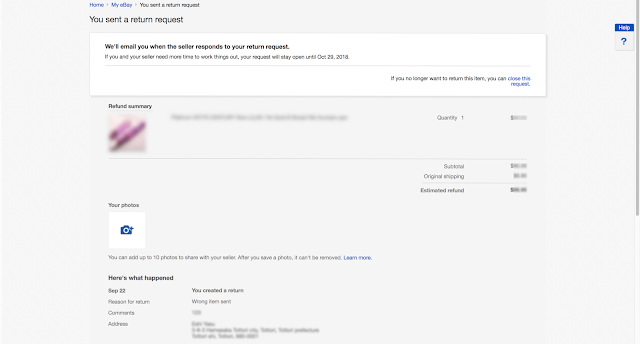 11. Return request details 메일이 온다. 여기부터는 실제 환불 절차 때 왔던 메일들이다. 내용을 읽어보면 셀러가 다음에 할 절차를 알려줄 것이다. 알려주지 않으면 2018년 9월 18일부터 이베이에 문의를 하면 된다고 써 있다.