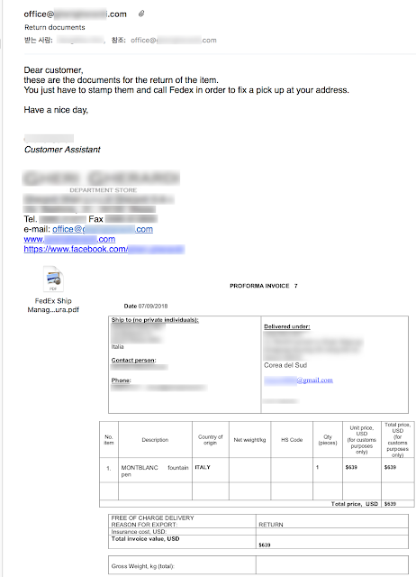 판매자가 보낸 페덱스 라벨, 인보이스 등의 pdf파일이 총 5개 있었다.