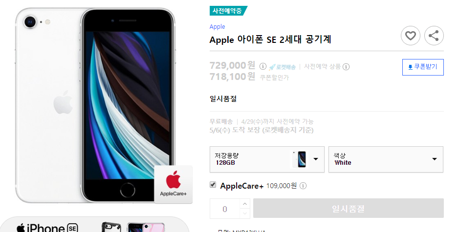 아이폰 SE 2세대가 출시되었다. 자급제 모델을 구입하기 위해 정보를 찾아보니 쿠팡에서 15% 할인된 가격으로 구입할 수 있다는 것을 알게 되었다.