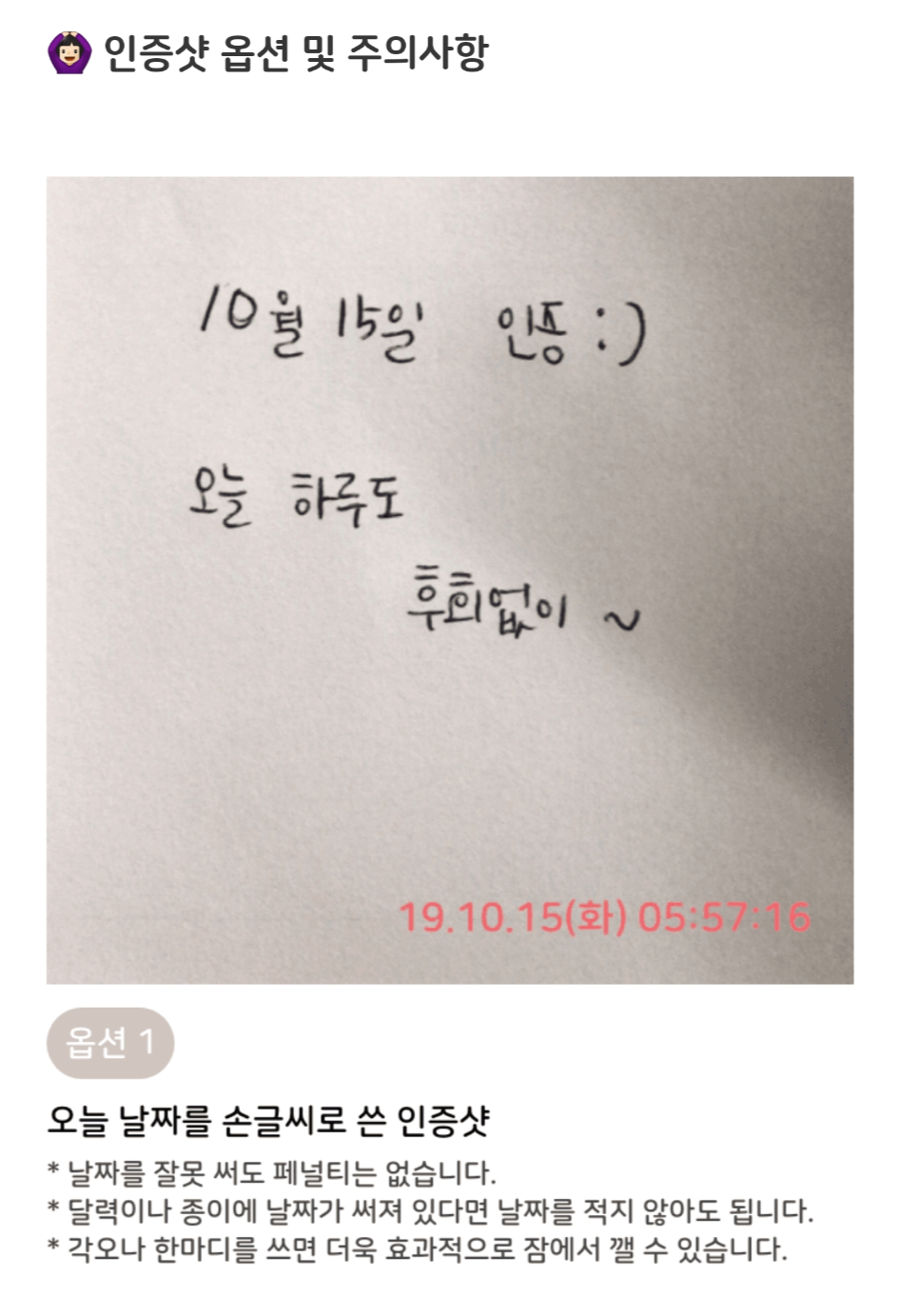그림 15~20은 아침 8시 기상 3차인증 미션의 인증 방식 6가지이다. 프리미엄 미션이어서 6가지 인증만 가능하다.